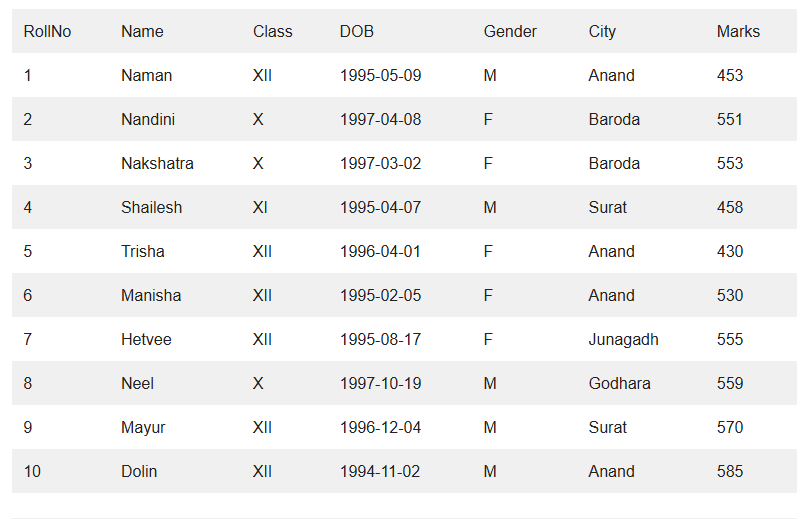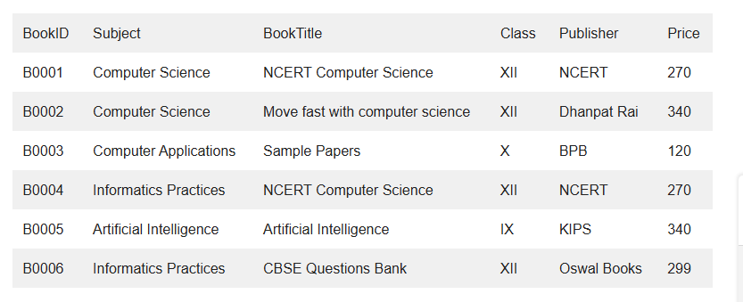 Consider the following table and write answers for given questions below: