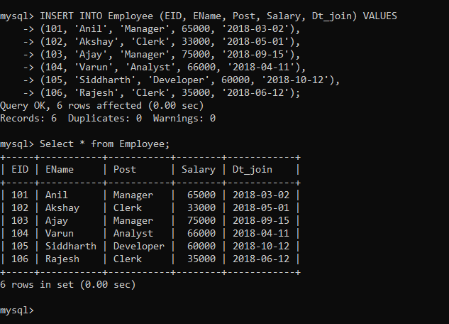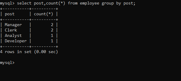 1. Count and display employees post wise.