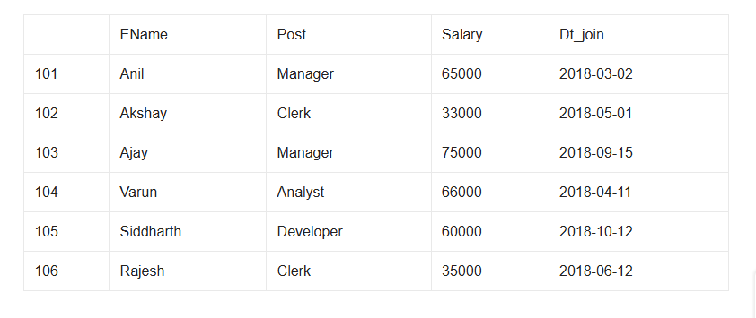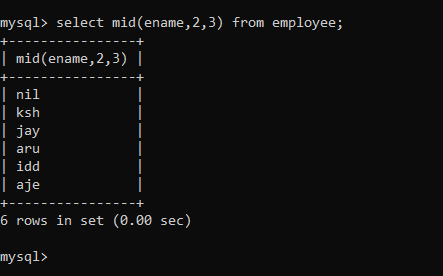 2. Display 3 characters from 2nd place from the column ename.
