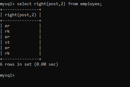 3. Display last 2 characters of post column.