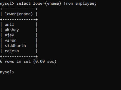 4. Display ename in lower letters