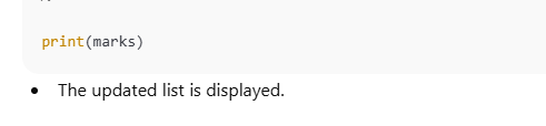 One of the key features of a list is its mutability. This means that the elements of a list can be modified, added, or removed after the list has been created. This property makes lists very flexible and suitable for situations where data changes frequently, such as updating marks, adding new records, or removing old data.