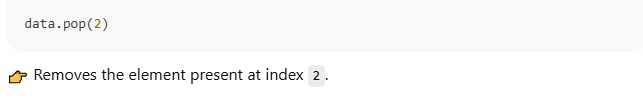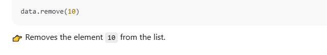 remove()→ by valuepop()→ by indexclear()→ removes all elementsAll methods modify the original list