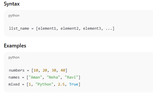 A list in Python is one of the most important and widely used data structures because it allows programmers to store multiple values in a single variable in an organized manner. Instead of using many separate variables, a list helps in grouping related data together, which makes programs simpler, cleaner, and easier to manage.