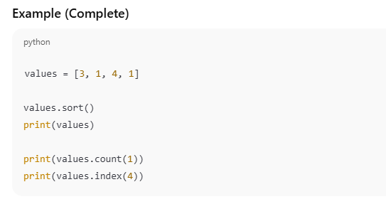 Python provides several list methods to perform operations directly on lists. These methods modify the original list.