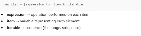 List comprehension is a concise and efficient way to create a new list from an existing sequence (such as a list, range, or string) using a single line of code. It reduces the number of lines and makes the code easier to read.