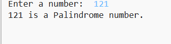 # Program to check whether a number is a palindrome or not # Input from user num = int(input("Enter a number: ")) # Reverse the number rev = 0 temp = num while temp > 0: digit = temp % 10 rev = rev * 10 + digit temp = temp // 10 # Check if original and reversed numbers are same if num == rev: print(f"{num} is a Palindrome number.") else: print(f"{num} is not a Palindrome number.")