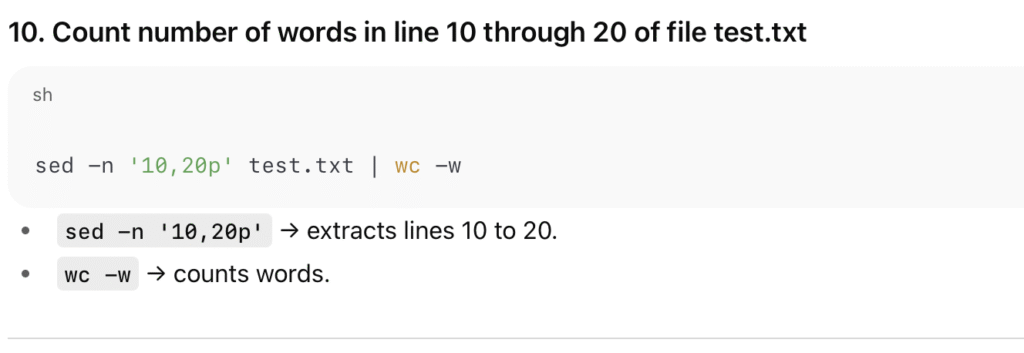 To count number of words in line 10 thought 20 of file test.txt