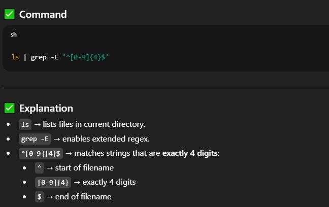 To list file names consist of only 4 digits.