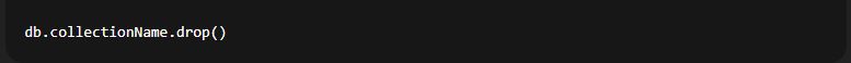 Dropping a collection means deleting the collection and all of the documents stored inside it. MongoDB provides a simple command to drop collections: