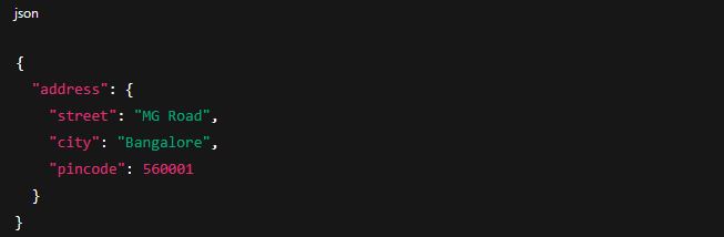 The Object data type, also known as Embedded Document, allows the storage of nested documents inside another document. This provides a hierarchical and more natural way of representing complex data. For example, an address field may itself be a document containing street, city, and pincode fields, such as