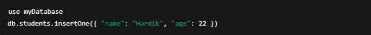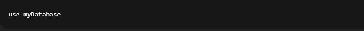 will switch the current working database to myDatabase. If the database does not already exist, MongoDB will create it once a collection and document are inserted into it. At this stage, the database exists in memory, but it becomes permanent only after actual data is stored.