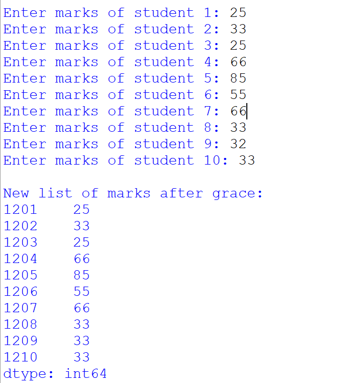 print("\nNew list of marks after grace:")