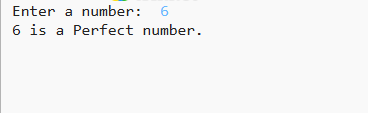 # Program to check whether a number is Perfect number or not # Input from user num = int(input("Enter a number: ")) # Variable to store sum of divisors sum_of_divisors = 0 # Find divisors of num for i in range(1, num): if num % i == 0: sum_of_divisors += i # Check condition if sum_of_divisors == num and num != 0: print(num, "is a Perfect number.") else: print(num, "is not a Perfect number.")