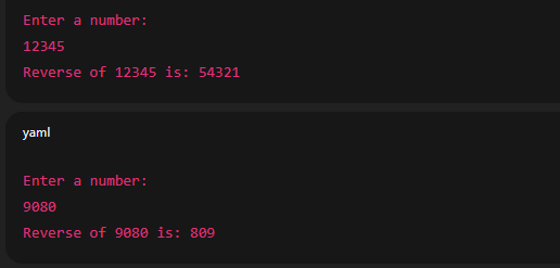 rev=$((rev * 10 + rem))      # build reverse number