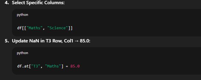 df.rename(columns={"Col1": "Maths", "Col2": "Science", "Col3": "SST"}, inplace=True)